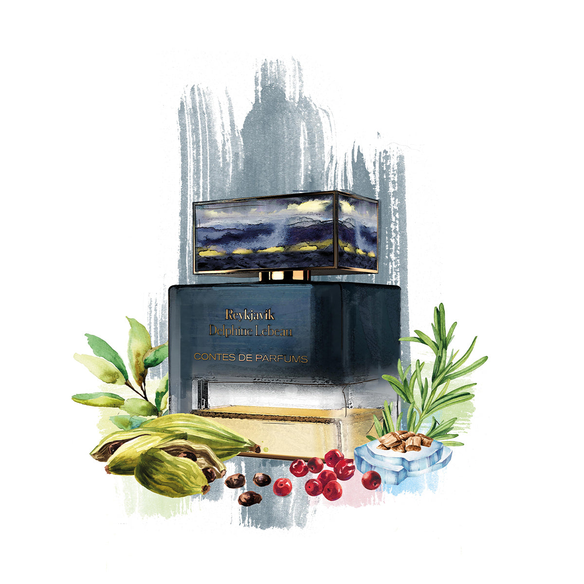 Eine olfaktorische Reise entlang Islands atemberaubendem Goldenen Kreis, mit einem obligatorischen Stopp in Reykjavík, erzählt von Delphine. Die komplexe und zugleich harmonische Struktur dieses Duftes spiegelt die Gegensätze Islands wider. Einerseits ist es ein sehr aromatischer und frischer Duft, inspiriert von den grünen Fjorden und eisbedeckten Gletschern dieses fast polaren Landes. Andererseits offenbart er eine warme und behagliche