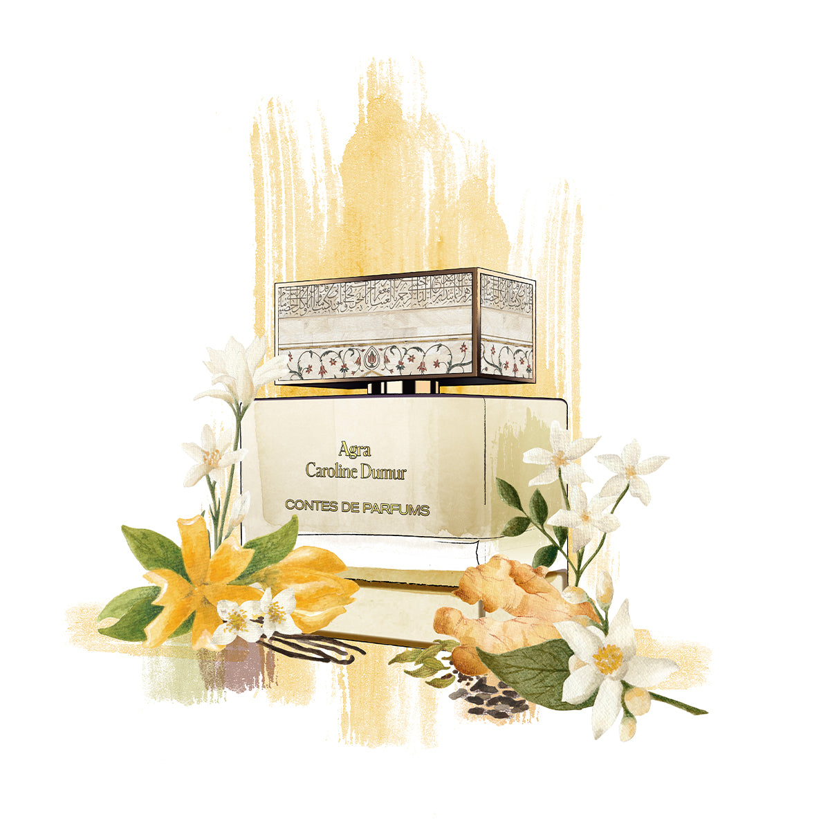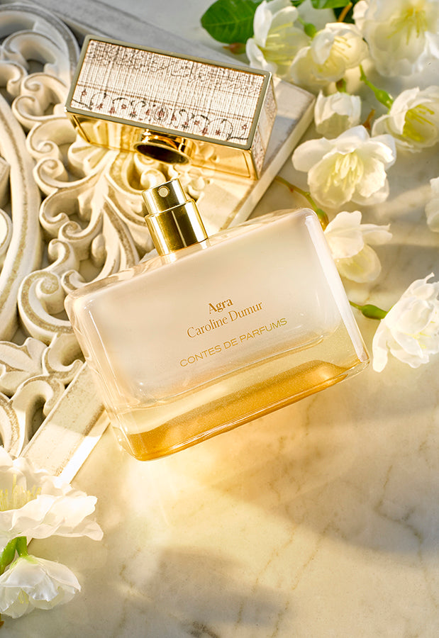 A tribute to mystical India, Caroline Dumur captures the essence of the city of Agra and the impressive monument of the Taj Mahal in a sublime fragrance. The fragrance opens on a dazzling ginger and a fresh combination of cardamom and neroli. The heart reveals opulent, floral notes of Indian tuberose and jasmine, symbols of love in Indian culture. Finally, the creation translates the warmth of the city with tonka and vanilla beans.