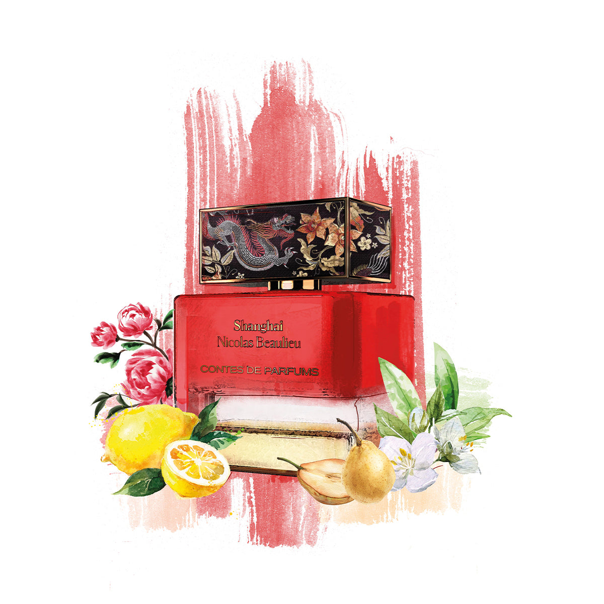 Shanghai has a special place in the memory of Nicolas Beaulieu, as it was the origin of his training process as a perfumer. This creation represents the union between modernity and the characteristic tradition of the city. The fragrance opens with an outflow of juicy nashi pear, a symbol of Chinese tradition as well as Asian culture. In its most floral part, the chinese peony stands out, providing colour and freshness, while in the background, a soft amber lingers and gives the fragrance great strength.